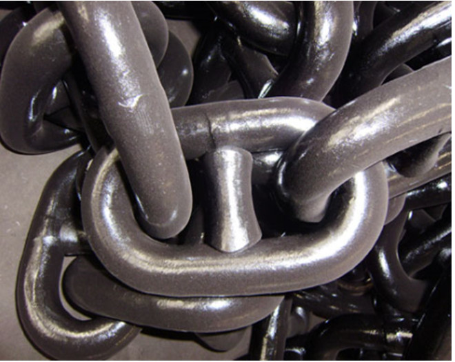锚链条的外形与起重链条外形一样,也是椭圆形,只是锚链条在链环的中间有一条金属圆柱,也叫有档锚链。有档锚链比无档锚链承载力要强,有档锚链一般应用在大吨位上。一般应用在船上。 起重链条只是做起重、牵引用,和锚链使用的场所不同。